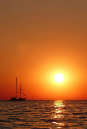 Experience a picture perfect sunset from the middle of the water where the sky glows in warm shades of orange, pink and gold.